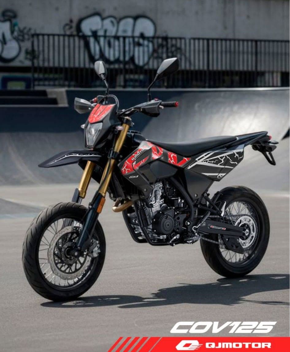 QJMOTOR COV125 Supermotard ABS Fr. 3’690.- Lieferbar in der Farbe: schwarz-rot 3 Jahre Werks-Garantie Einzylinder, 4-Takt, Euro 5+ Max. Leistung 15 PS (11 KW) Einspritzung EFI Kühlung Flüssigkeit Umgedrehte Teleskopgabel vorne Teleskopische Schraubenfeder mit Öldämpfung hinten Tankinhalt 8.0 Liter Sitzhöhe 860 mm Bodenfreiheit 280 mm Gewicht 129 kg. Bereifung vorne 100/80-17 …